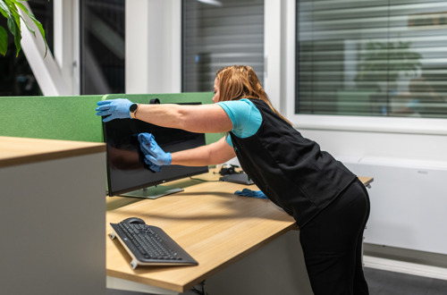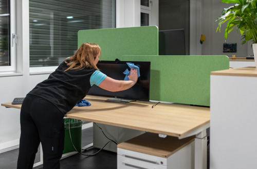Unsere Leistungen umfassen die tägliche oder regelmässige Reinigung von Arbeitsplätzen, Empfangsbereichen, Besprechungszimmern, Teeküchen und Sanitäranlagen. Dabei kümmern wir uns um Böden, Tische, Bildschirme, Türen, Lichtschalter, Griffe und alle weiteren relevanten Flächen – diskret, effizient und mit Blick für Details.